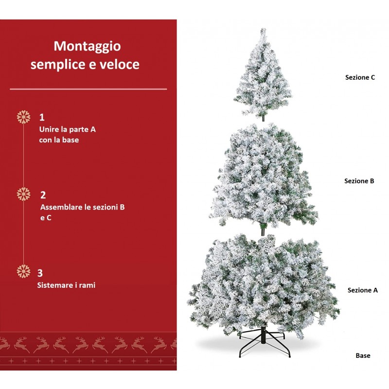 L'albero di Natale Rotex è un complemento di arredo indispensabile per rivivere, anno dopo anno, un'atmosfera natalizia unica ed indimenticabile. Quella magica atmosfera che ognuno di noi conserva ed attende sin dalla più tenera età. Un albero inimitabile per rendere calda ed accogliente la nostra casa rispettando la natura.Riproduce fedelmente la struttura tridimensionale dei caratteristici rami degli alberi di pino conferendo un realismo sbalorditivo.Grazie al sistema di montaggio e smontaggio ad ombrello, si monta facilmente e può essere riposto velocemente nella confezione originale.Estremamente folto grazie ai rami orientabili disposti in misura decrescente lungo la struttura portante è un albero dal grande impatto visivo.La struttura portante è completamente rivestita di aghi per conferire all'albero un aspetto realistico e per nulla plastico ed il supporto metallico mantiene l'albero stabile ed in perfetto equilibrio dalla base fino all'apice.È un albero artificiale i cui rami sono realizzati in pvc per proteggere e non danneggiare la natura. La tonalità di verde che lo caratterizza lo rende totalmente realistico.L'albero è stato innevato con neve artificiale ben distribuita in ogni punto e dunque non solo sulle estremità dei rami.Specifiche dell'albero di Natale Tirolese Innevato- struttura metallica centrale tubolare ad alta resistenza ricoperta di aghi di pino