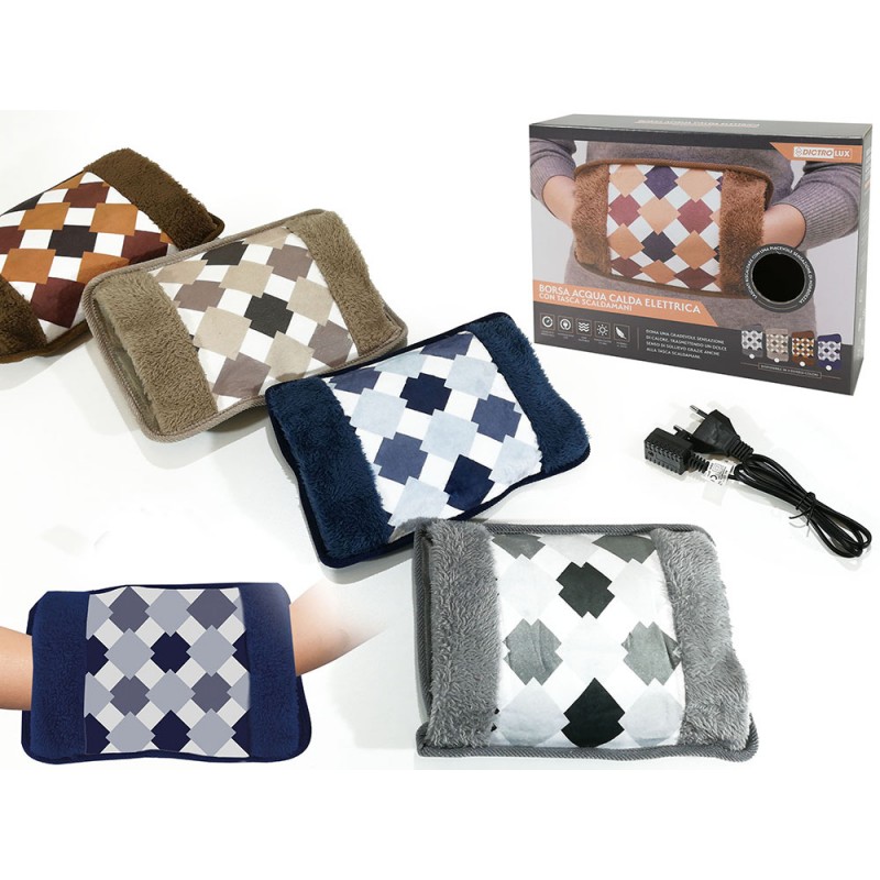 750884 è il modello di borsa di acqua calda elettrica dotata di tasca scaldamani ed è rivestita con un morbido tessuto confortevole al tatto. Si riscalda rapidamente e trattiene il calore a lungo.
